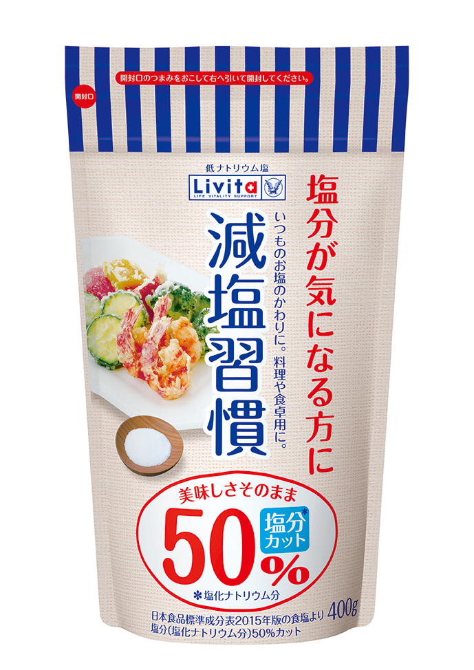 ●減塩習慣は、食塩に比べ塩分(塩化ナトリウム分)を50%カットした食用塩です。